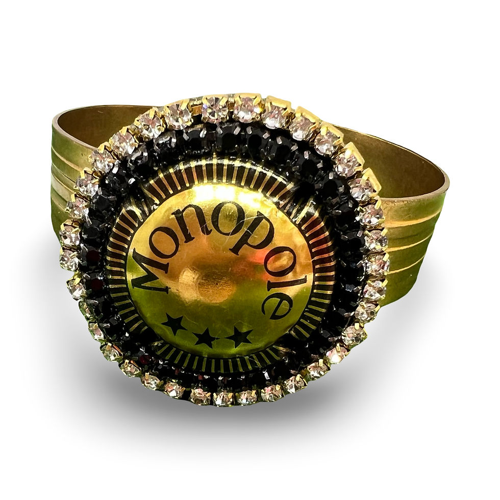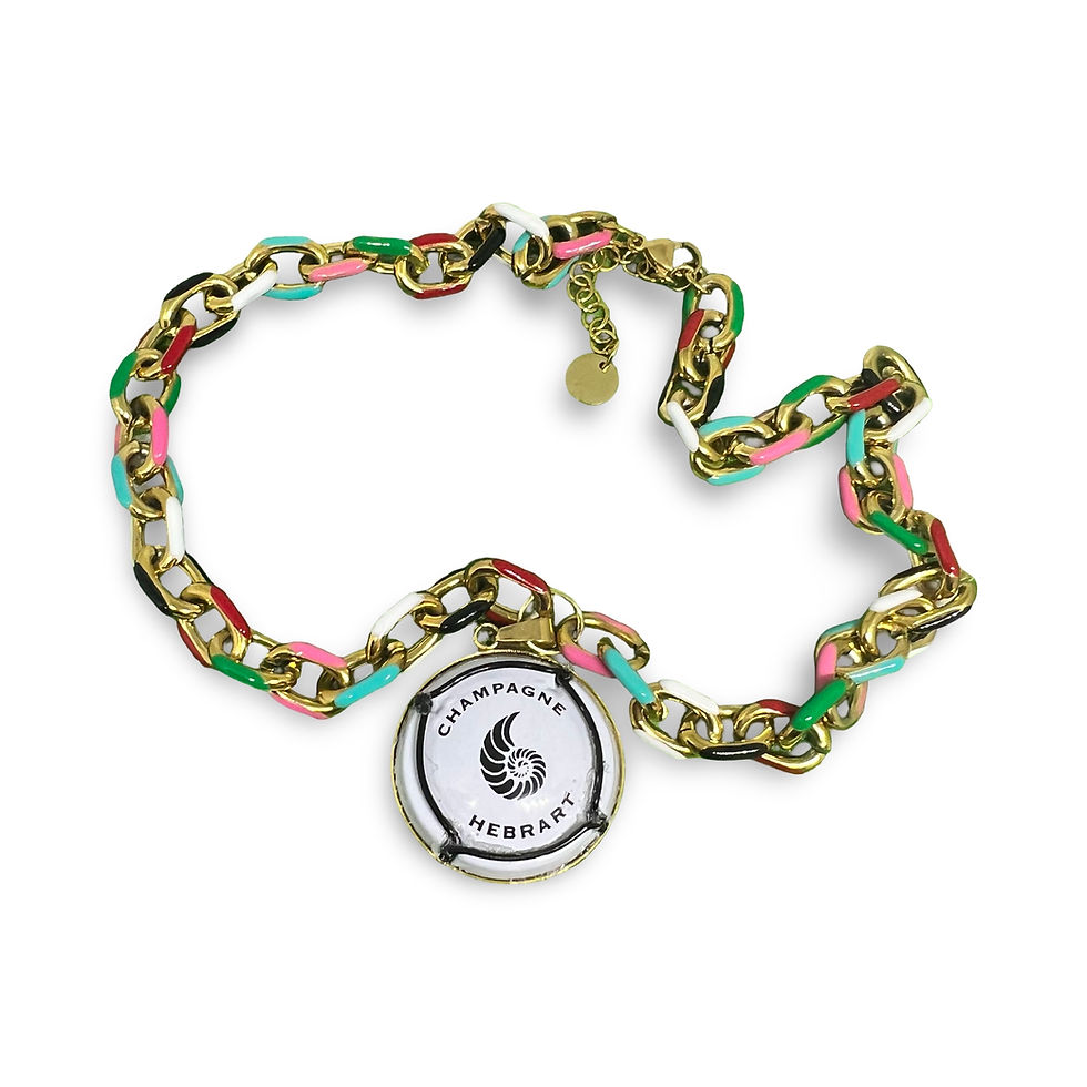 Celebrate the spirit of luxury travel and sun-drenched moments with this stunning, handcrafted bracelet. Featuring a genuine Pommery "Royal Blue Sky" champagne cap at its center, this piece is a perfect blend of high-end style and bohemian, coastal charm.