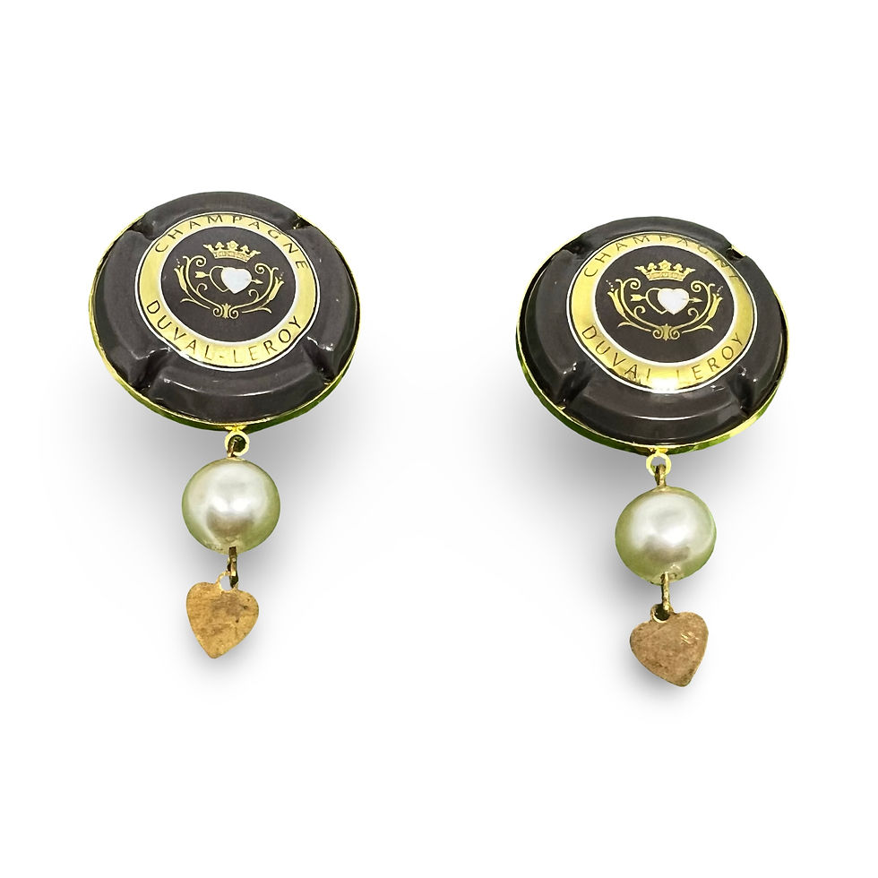 • Upcycled Champagne Centerpiece: The focal point is an authentic Pommery "Royal Blue Sky" champagne cap, instantly recognizable by its striking, vibrant royal blue color. The cap carries the original "POMMERY" and "REIMS" markings, celebrating the prestigious Champagne House .